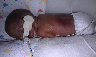The four months in the NICU at Deaconess Hospital can only be described as purgatory, The waiting place. Her nurses were my "Tour Guides" who became my friends. The lead the journey through that Waiting Place of uncertainty and got me, my family and Emma through it. Especially in the begining. Every time her monitors went off the thought would jump to my mind, would this be the moment she would say she had enough, her body could not take anymore and Heavenly Father would take her in His arms? Every time! And it was OFTEN! Her nurses called them "Emma's Death Defying De-Sats" Usually resulting in her being "bagged" air forced into her lungs until she decided to breath on her own and stimulation, rubbing her back or sternum until her heart rate would come back up. I learned how to do this long before I was able to hold her for the first time at 5 weeks old. So, if her numbers would start to dip, I would rub her back and talk to her to avoid alarms. Her nurses said my "voice was too nice," Emma needed my "I mean business" voice. Sometimes it was enough, other times, not so much.